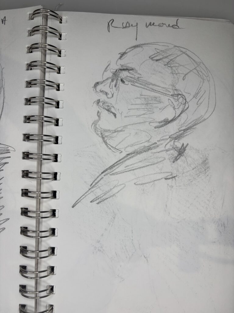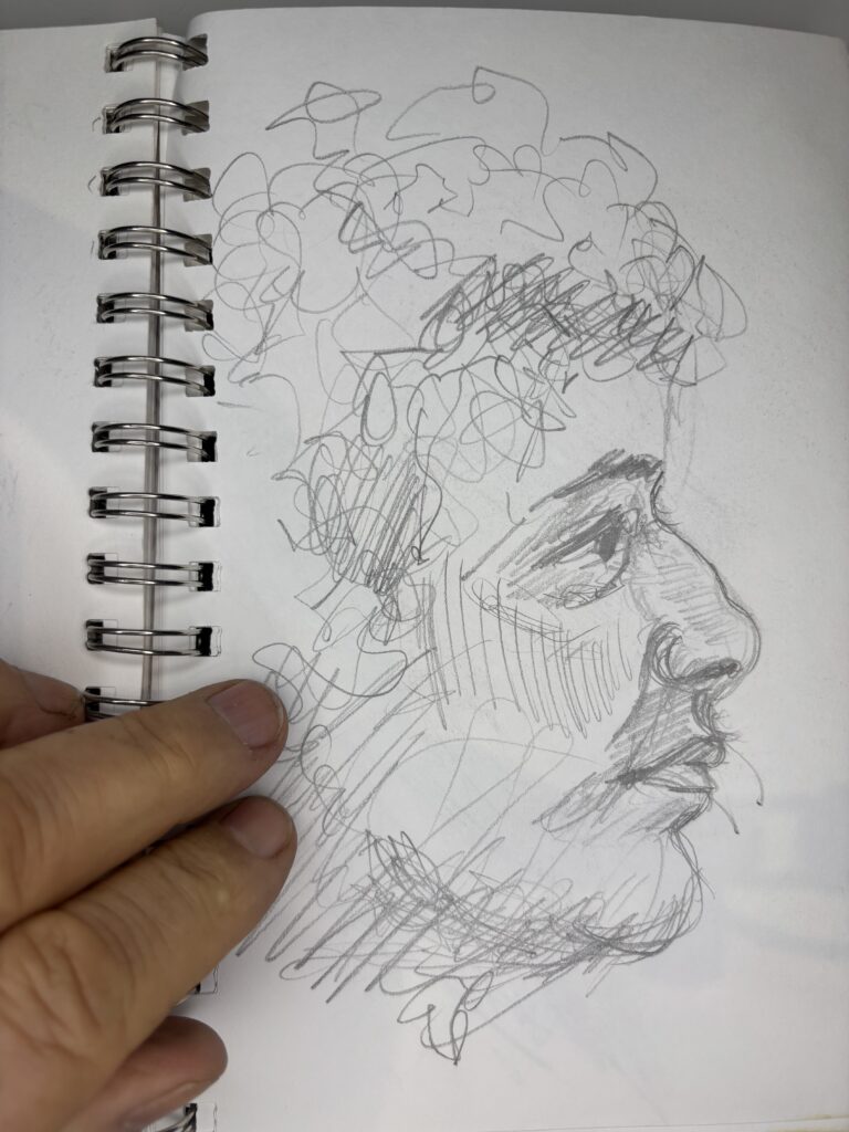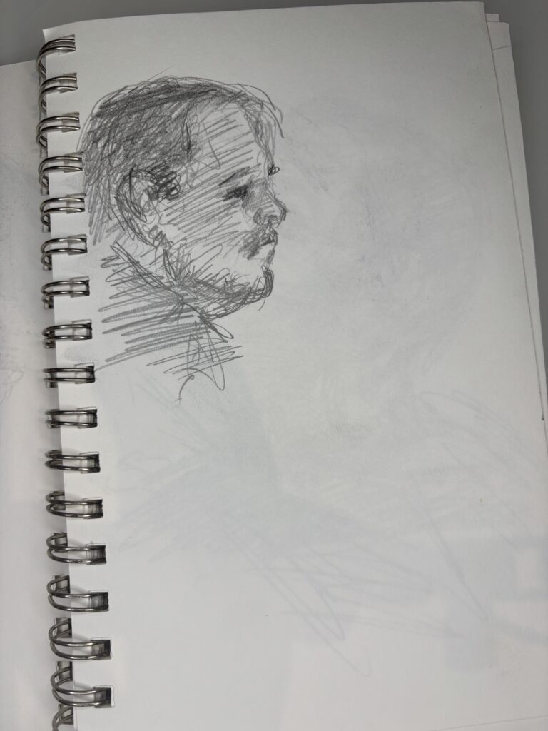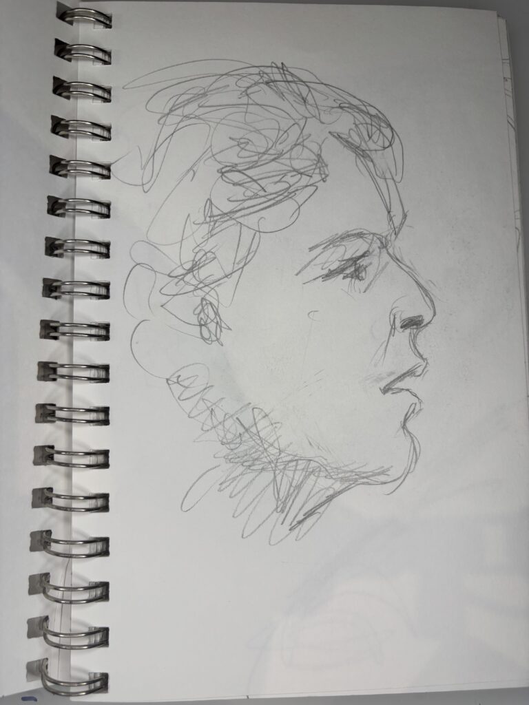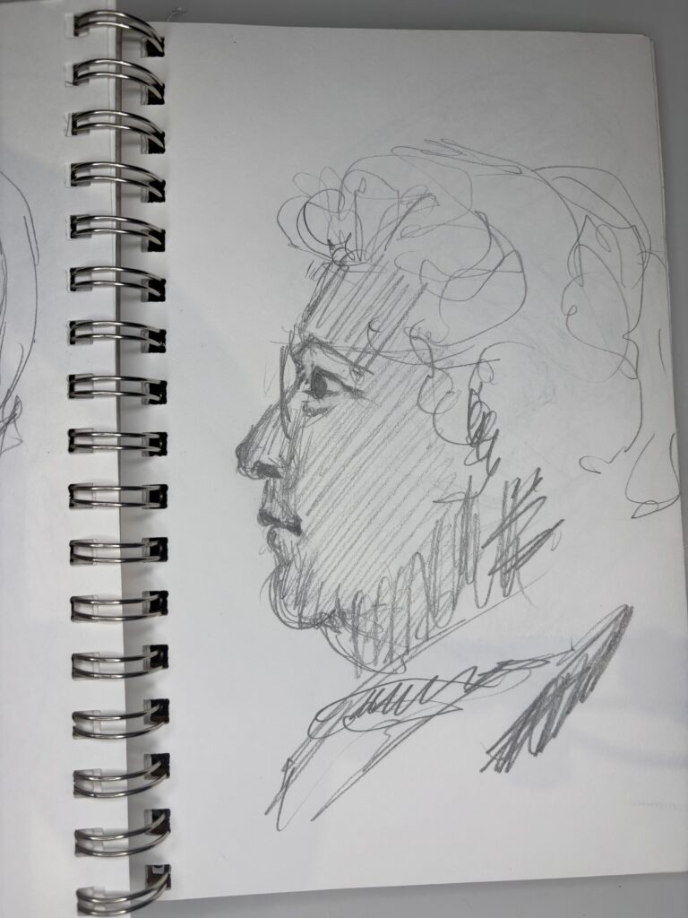 Drawing people who are not posing presents its challenges, but I love doing it. You have to draw quickly, and you don’t have time to complete the drawing properly when people move, turn away, get up, and leave while you are sketching them, which can make some drawings look distorted or wonky. These drawings were done in fast-food restaurants, bars, and airports.