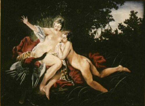Leedah and the Anhinga was the first painting I based on an old master’s painting, Boucher’s Leedah and the Swan. I used his figures but envisioned what the painting would look like if Boucher had lived in Florida. In my version, the long-necked Florida anhinga replaces the swan, and the original European swamp background transforms into a mangrove coastal wetland. The change in setting did not change the incongruity of seeing two naked ladies having a picnic in a swamp.